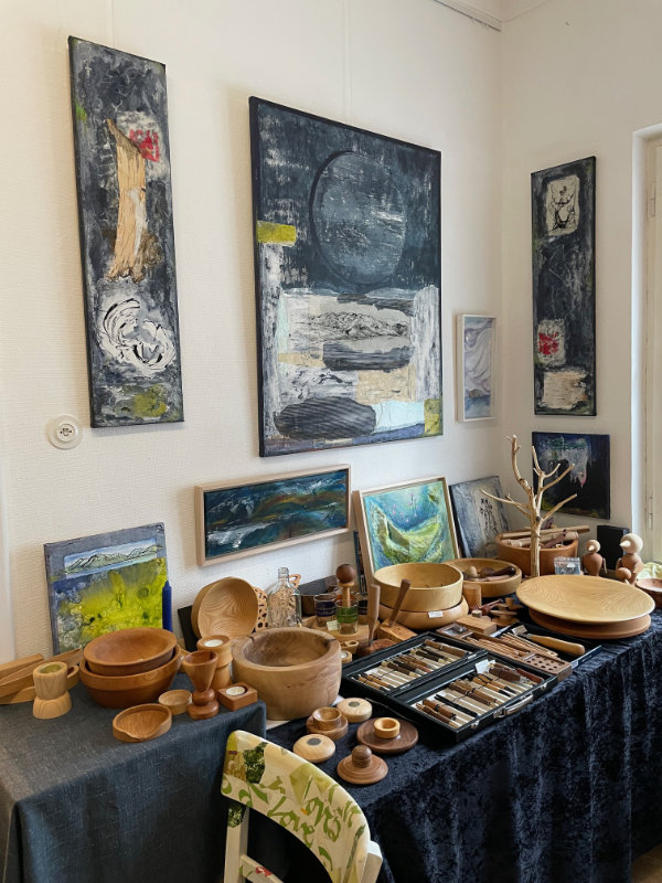 Malerei, Zeichnung und Holz sind wiederum geboten: zu sehen sind colorierte Reiseskizzen aus vielen Ländern (mit und ohne Rahmen), Tuschezeichnungen, Grafit oder Kreide, und Bilder mit einer Mischung aus Malerei und Zeichnung. Auch gedrechselte Holzobjekte präsentieren sich in großer Auswahl. Und sicherlich entdecken Sie kleine Geschenke, Unikate und Originale für den Weihnachtstisch.